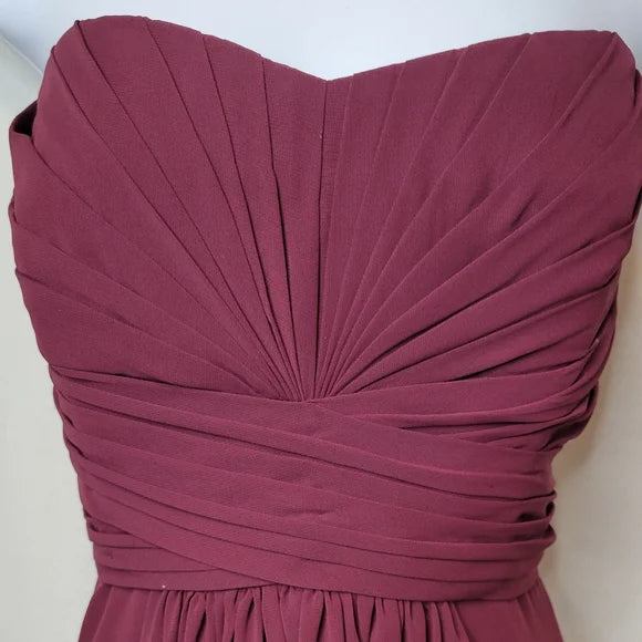 David’s Bridal Plum Strapless Bridesmaid Gown – Sweetheart Chiffon Maxi