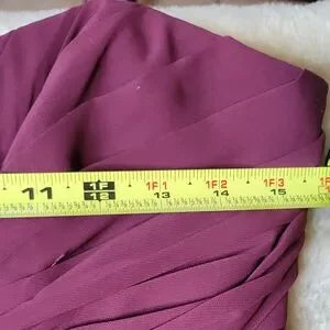 Step into effortless elegance with this David’s Bridal plum chiffon bridesmaid gown, featuring a flattering sweetheart neckline, a fitted pleated bodice, and a flowing layered skirt with sheer overlay. The rich, romantic purple shade photographs beautifully and flatters every skin tone—perfect for weddings, formal events, and evening occasions.